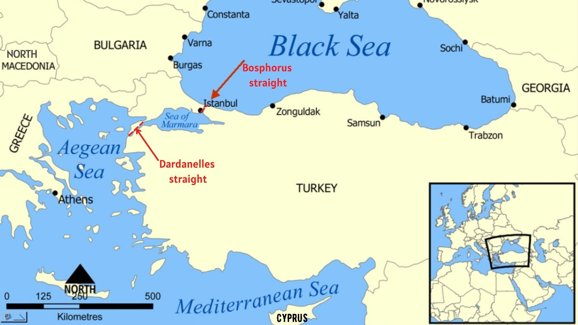 Today, the straits matter primarily for energy and grain shipments. Russian and Central Asian oil and gas reach global markets through the Black Sea and these passages. Ukrainian grain exports, when not blocked by conflict, flow through the same route. The straits are also critical for the military balance in the region, as they control naval access to the Black Sea.